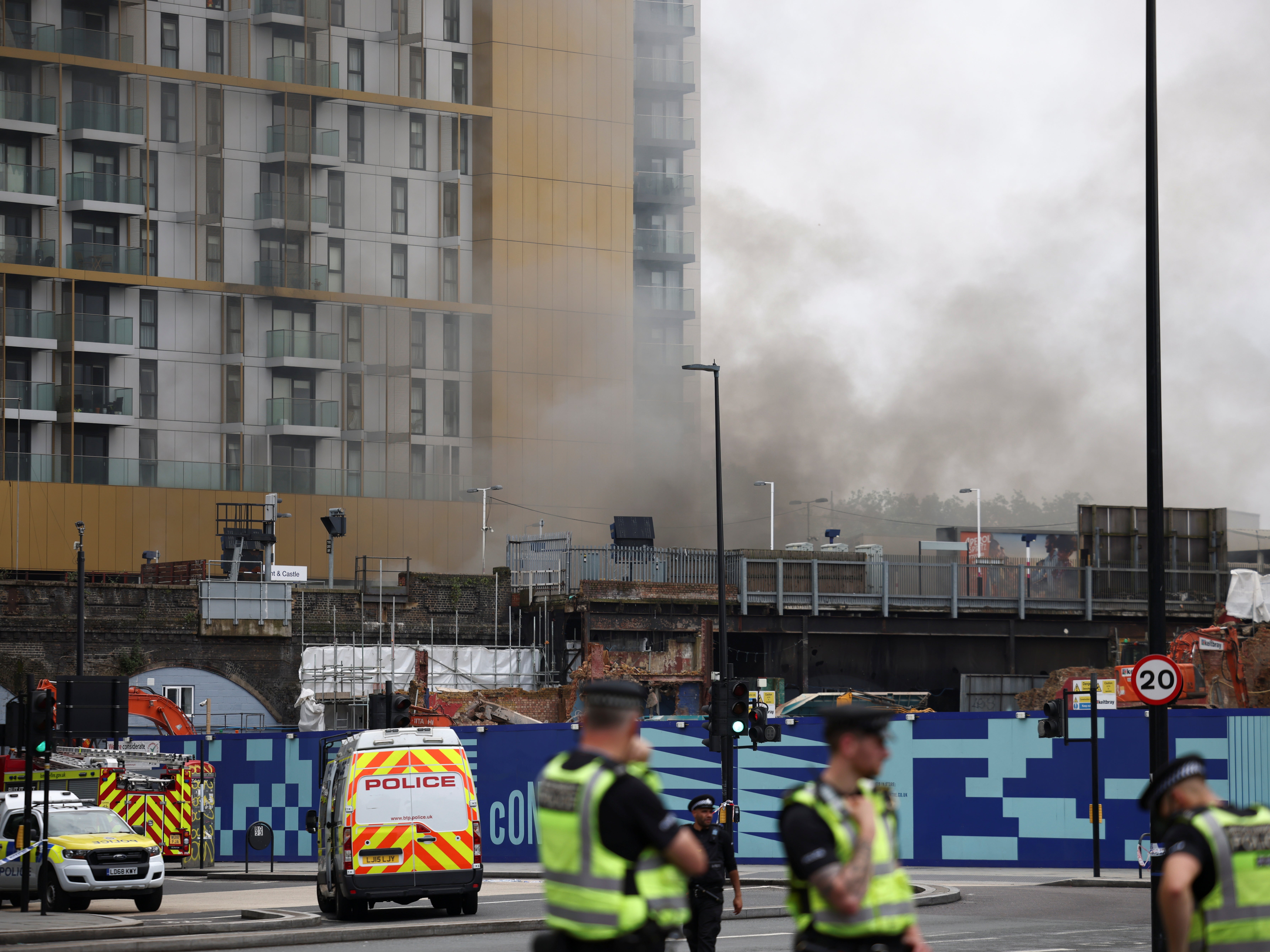 Fifteen engines and 100 firefighters. A video posted from the scene showed an. Around 100 firefighters appeared to have brought under control a big fire near the central london train station of elephant and castle. A spokesman for elephant and castle town centre, the private body overseeing a major regeneration project near to the fire, said: Emergency services are at the scene and.